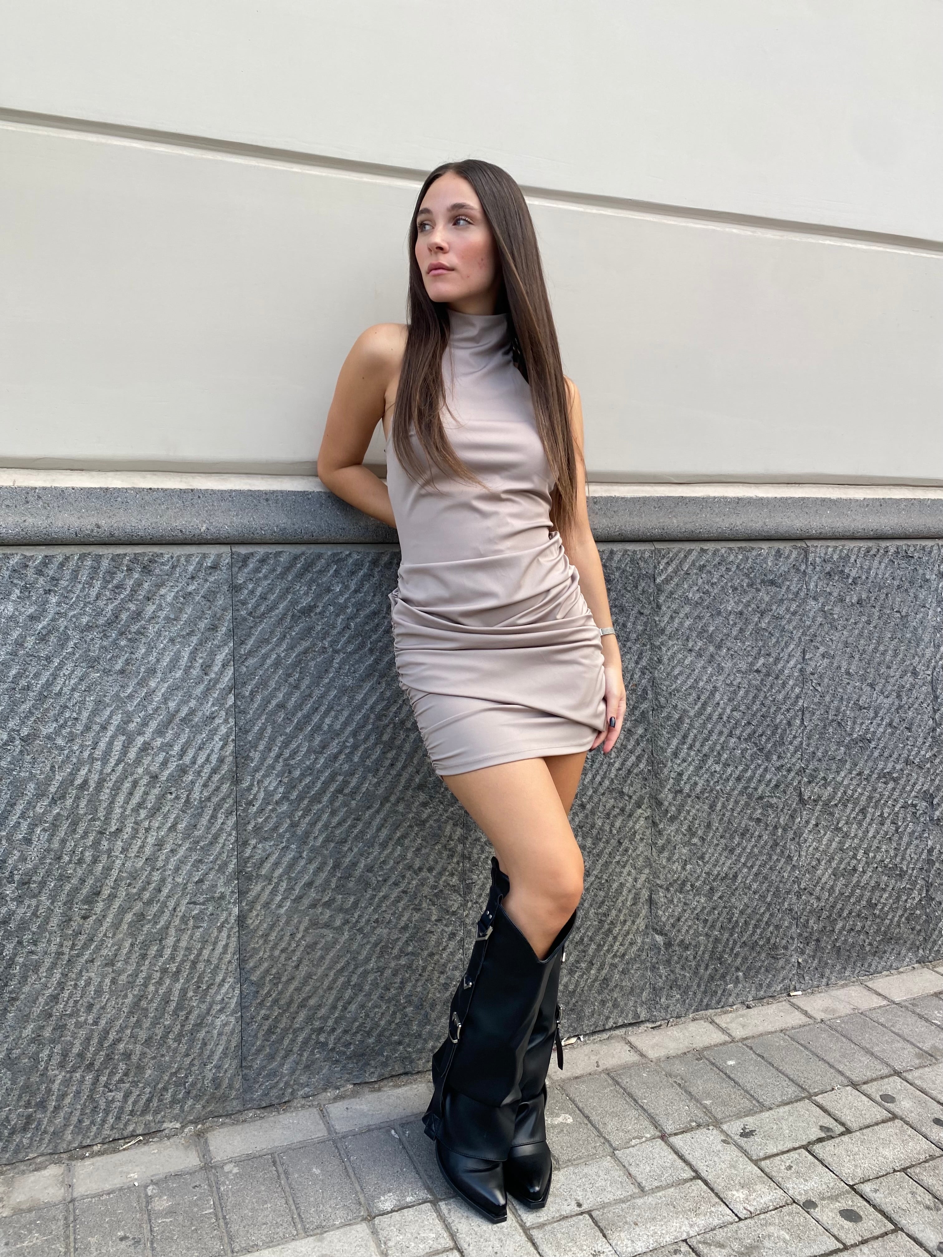 Abito corto lycra, elasticizzato, scollato dietro, taglia unica adattabile ad xs, s, m.