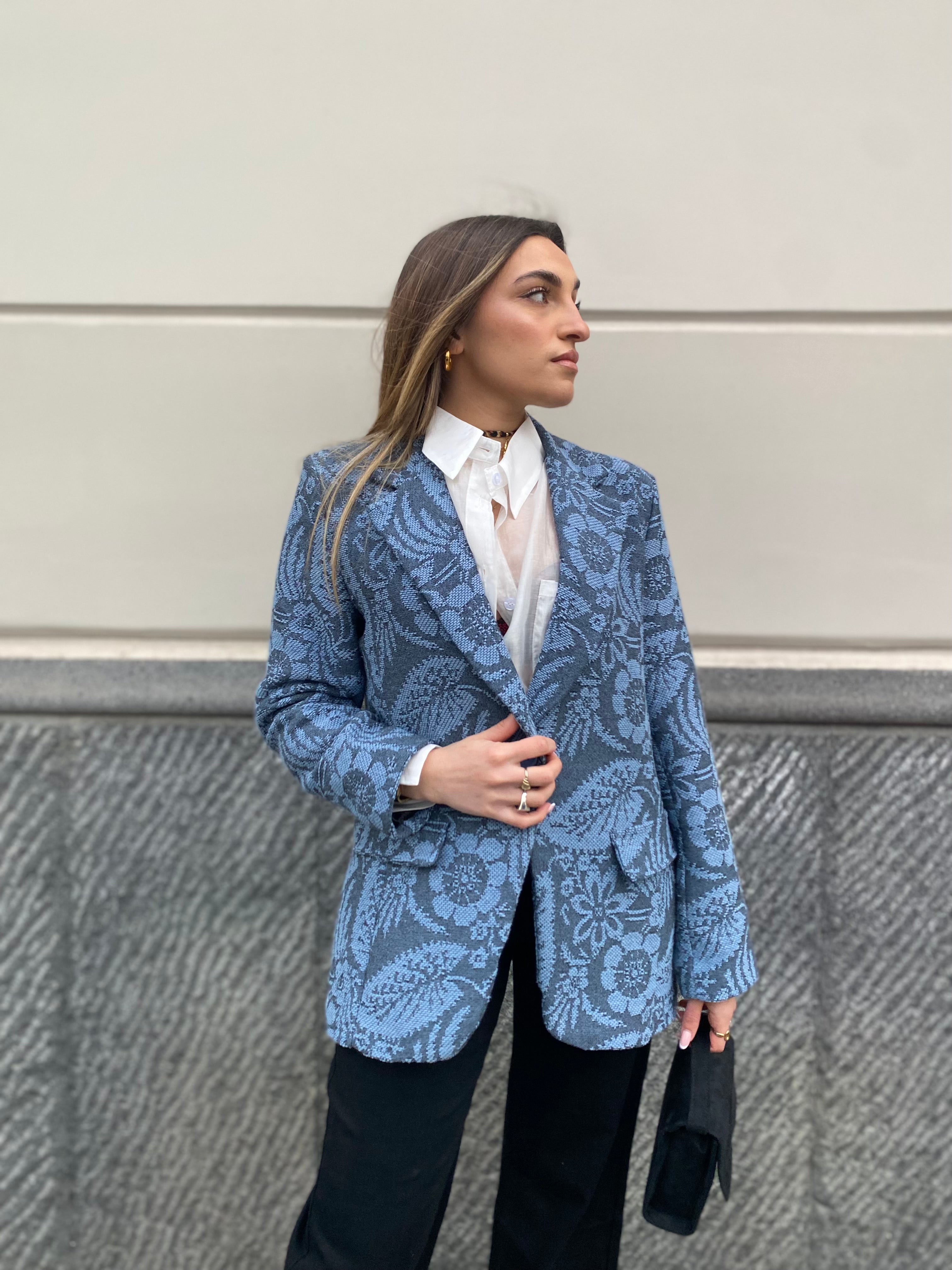 Giacca in twid, con fantasia floreale ricamata, foderata internamente, un bottone, taglia unica adattabile ad XS, S,...