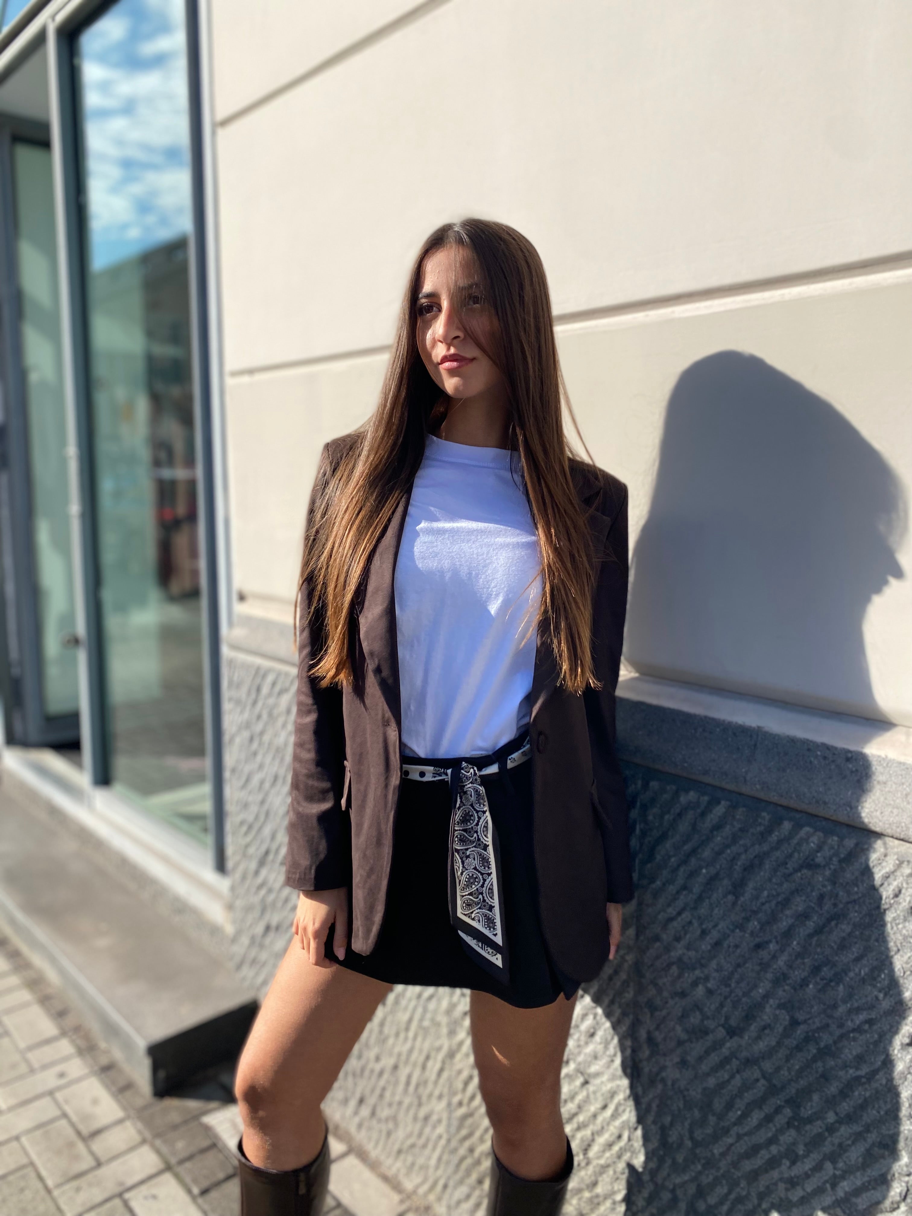 Giacca in daino ecologico, foderato internamente, taglia unica adattabile ad xs, s, m, l.