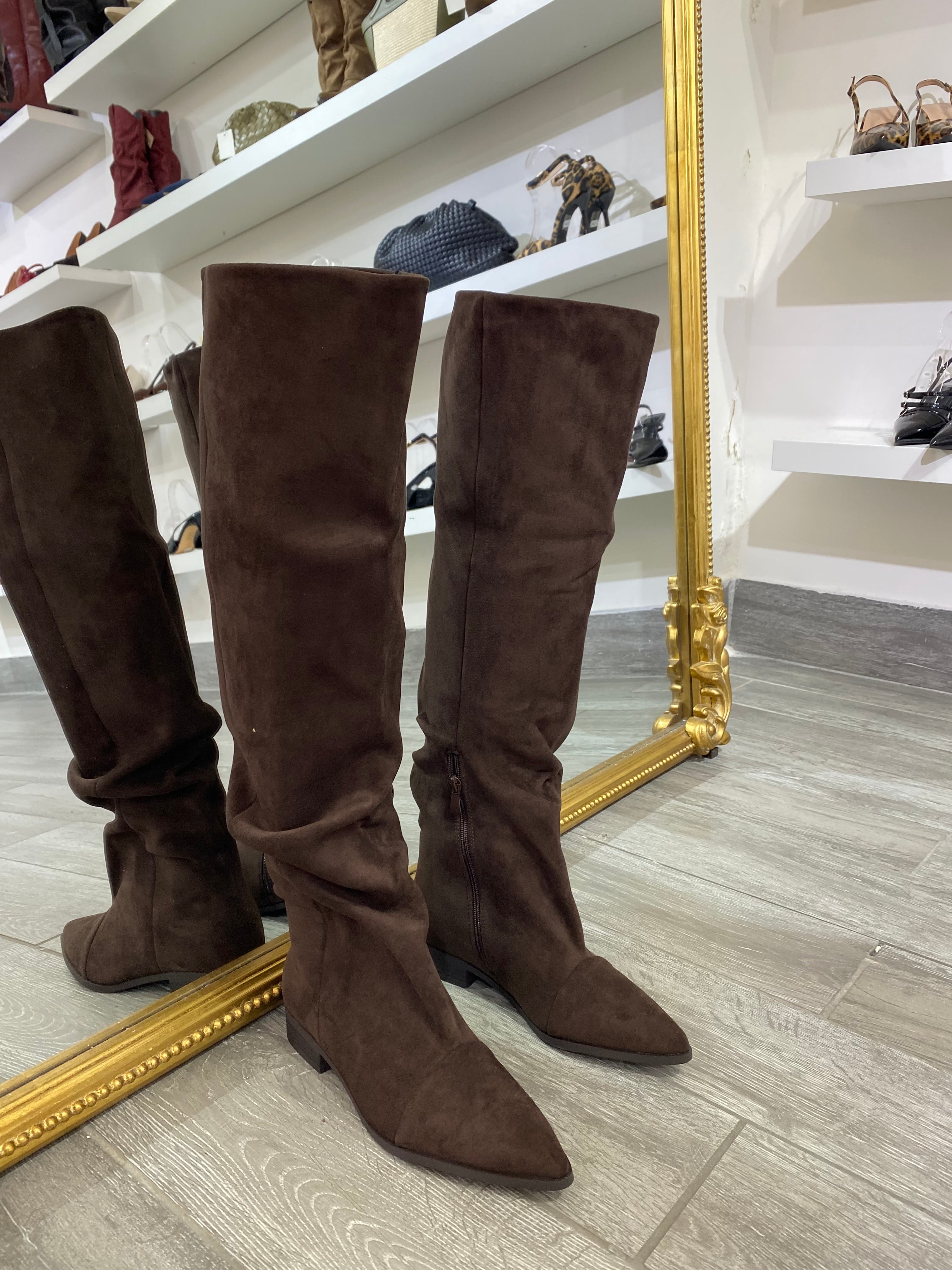 gambale 56/57 cm, tacco basso, eco camoscio.