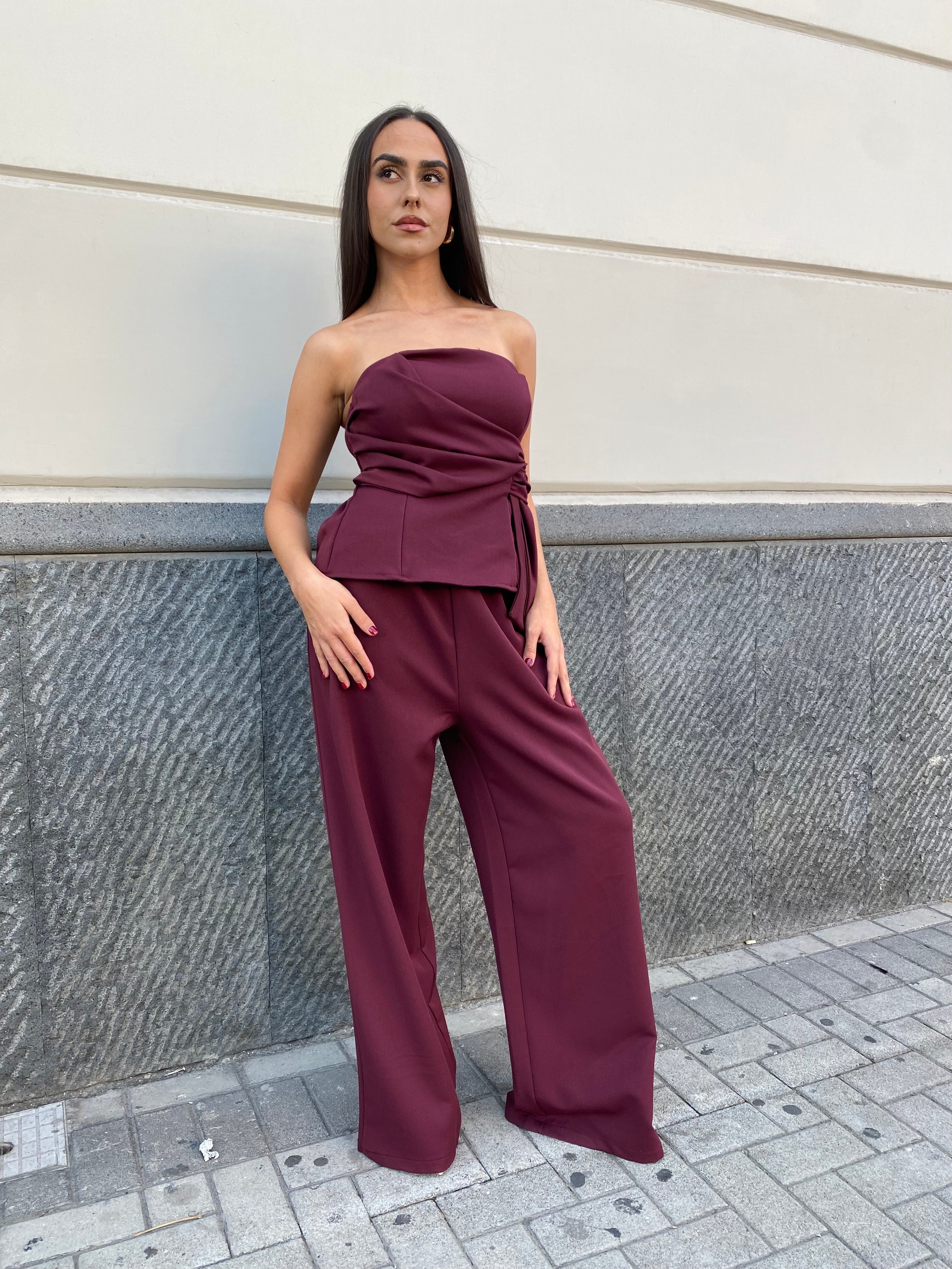 Coordinato con top corto, elastico sul retro, pantalone palazzo, elastico in vita, taglia unica adattabile ad xs,...