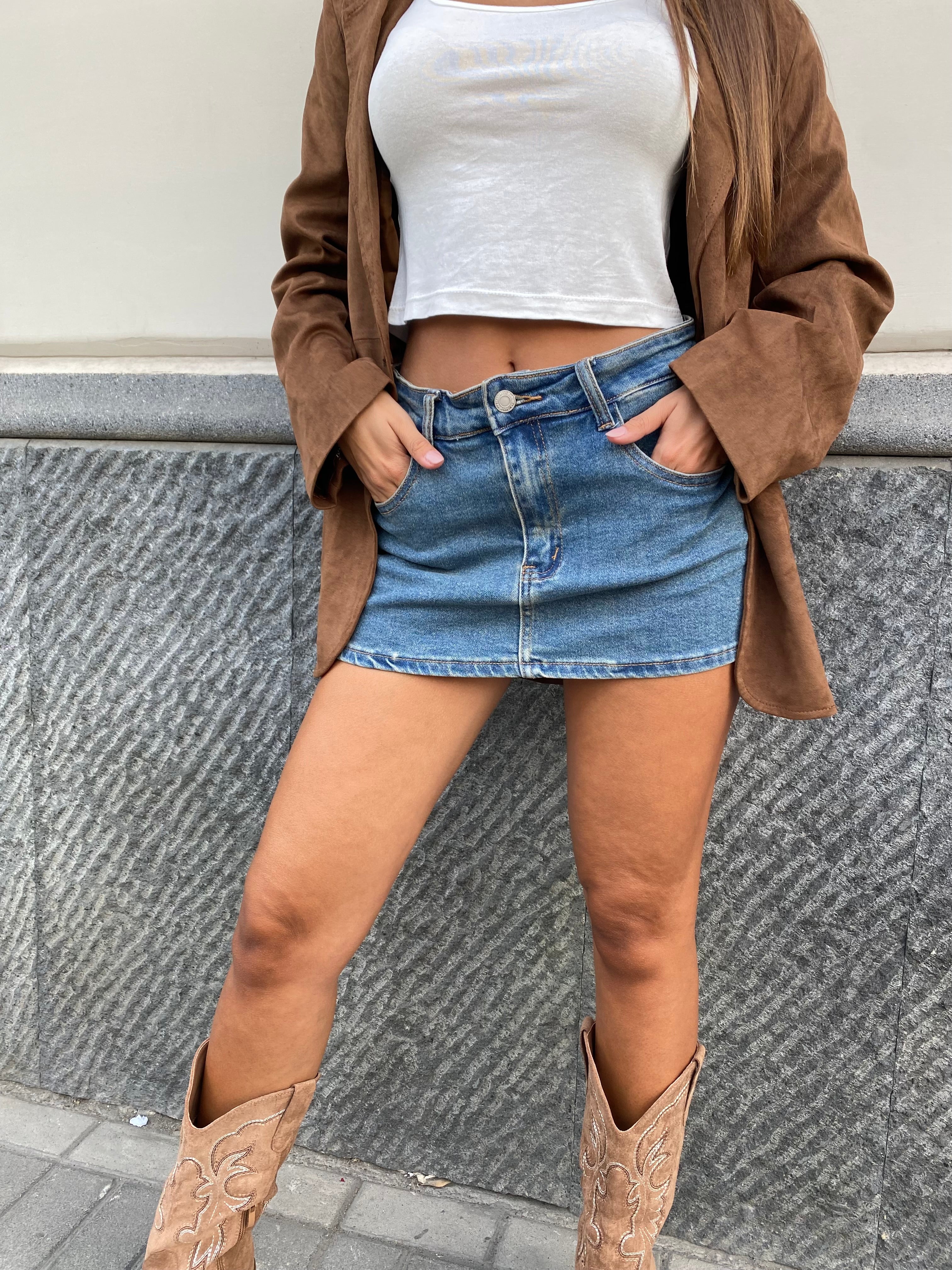 Gonna in denim elasticizzata, con pantaloncino sotto.