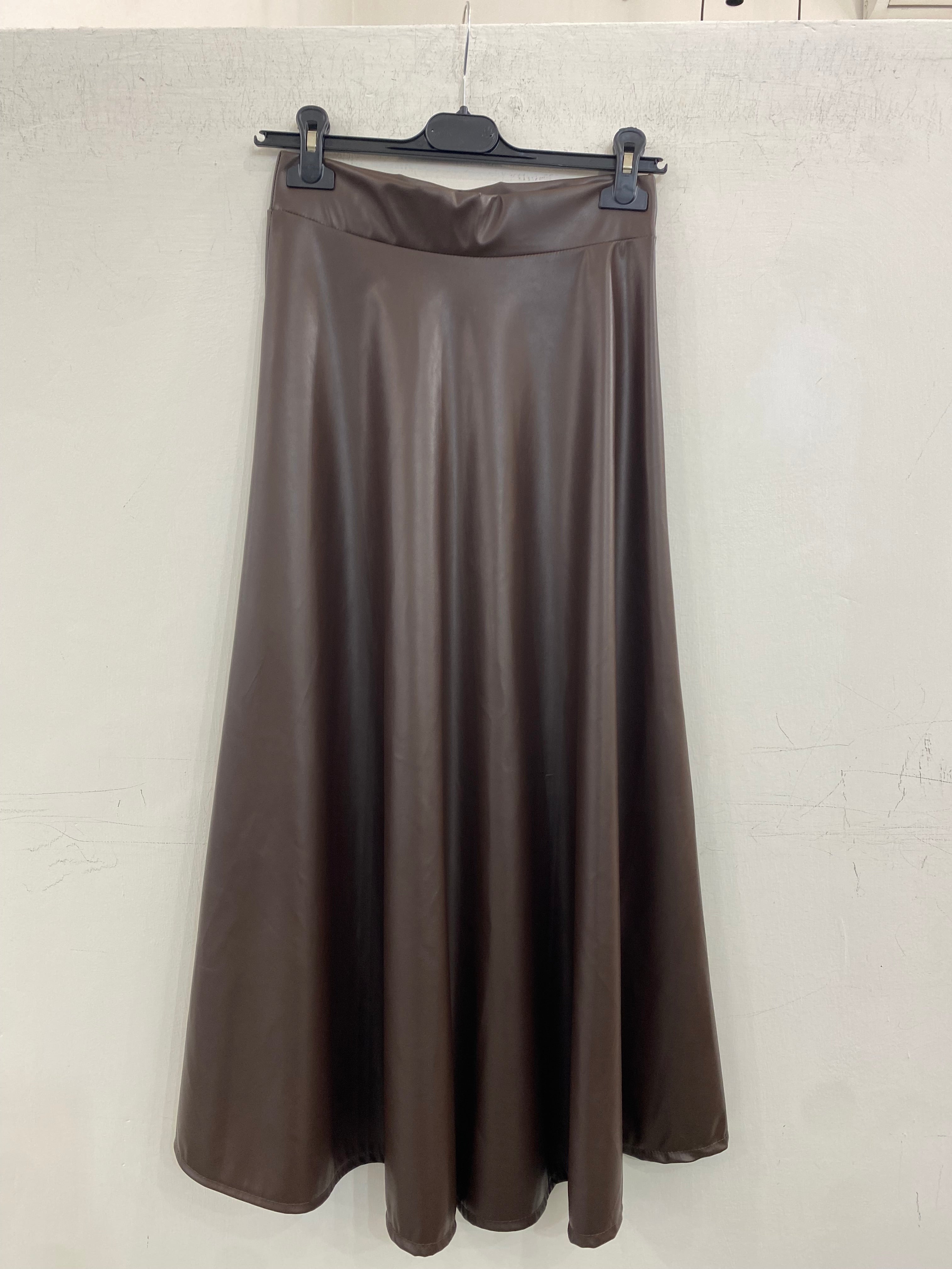 Gonnellone lungo, in ecopelle, elastico in vita, taglia unica adattabile ad xs, s, m.