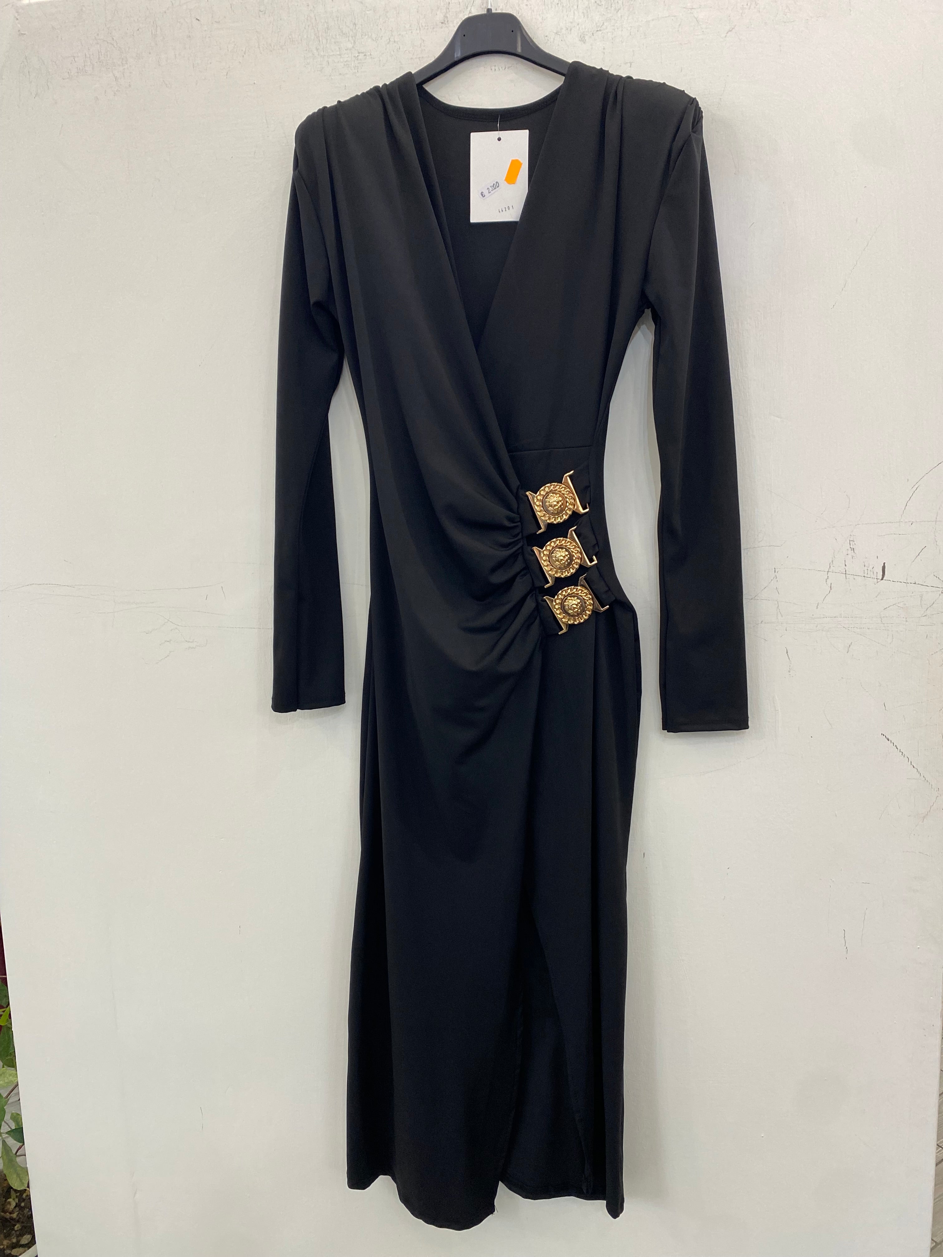 Abito lungo in lycra, elasticizzato, con spacco, chiusura a ganci oro, taglia unica adattabile ad xs, s,...