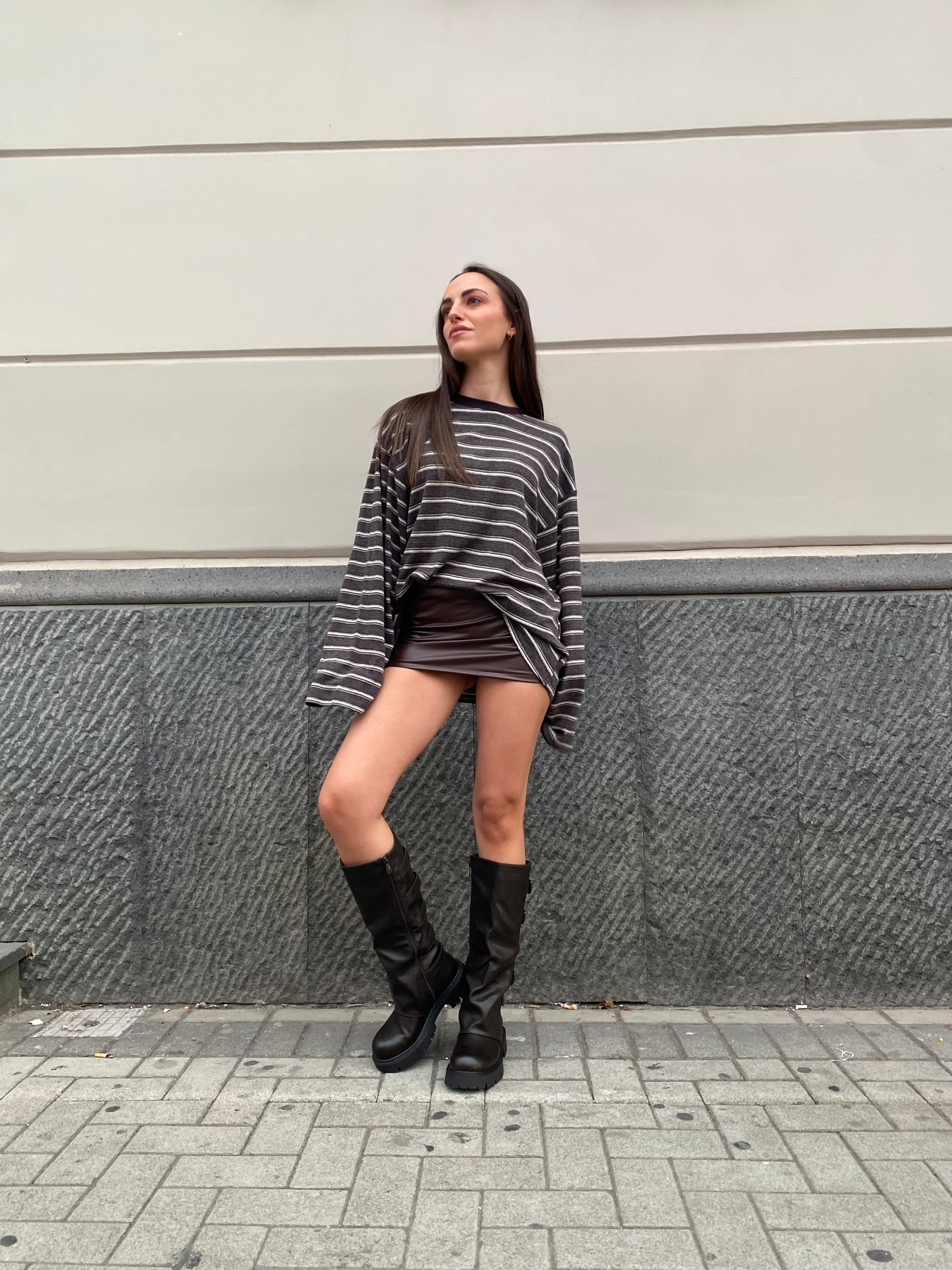 Maglia girocollo a righe, cotone caldo, manica ampia, taglia unica adattabile XS, S, M.