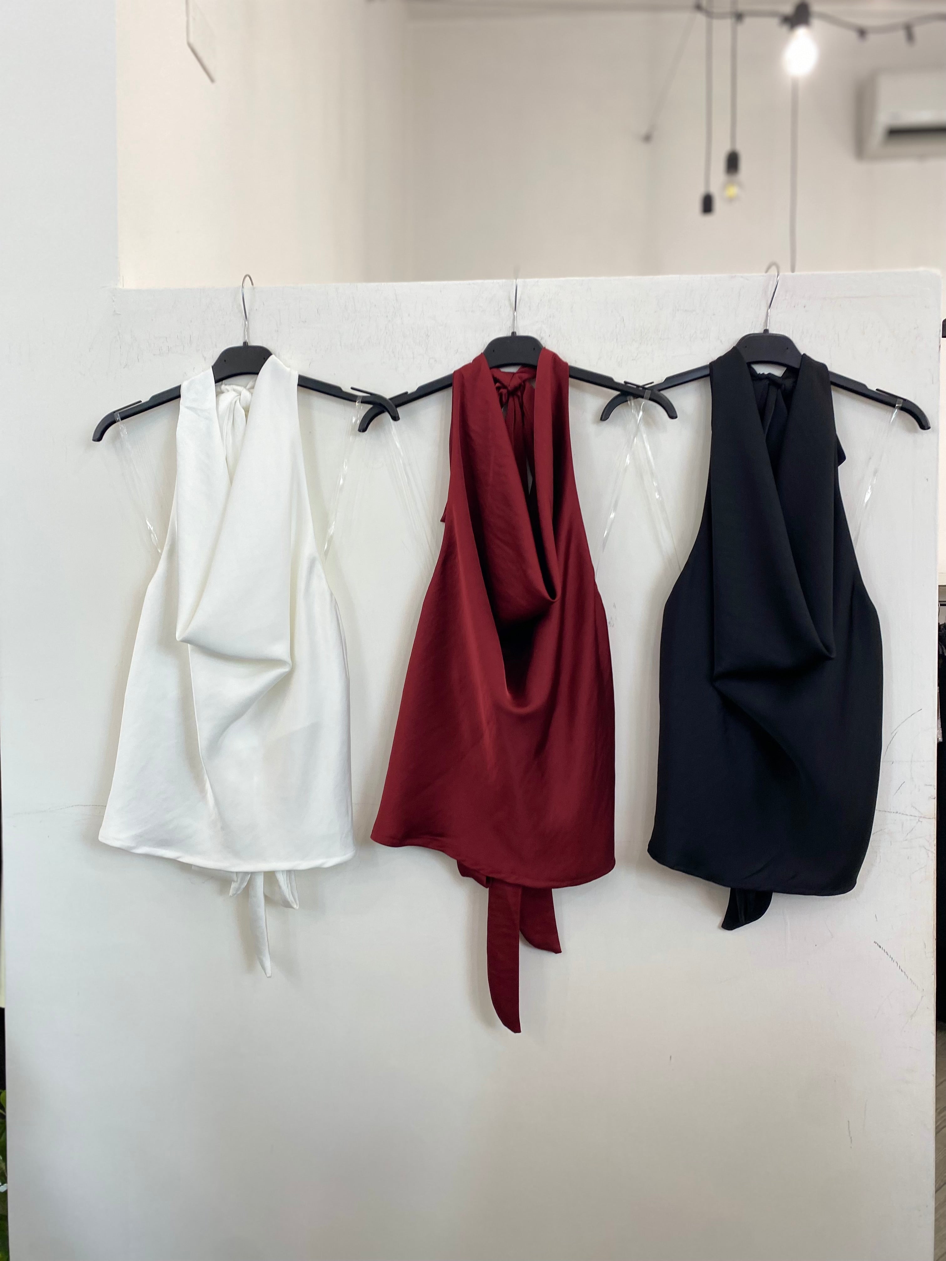 Top effetto raso, scollato dietro, taglia unica adattabile ad xs, s, m, l.