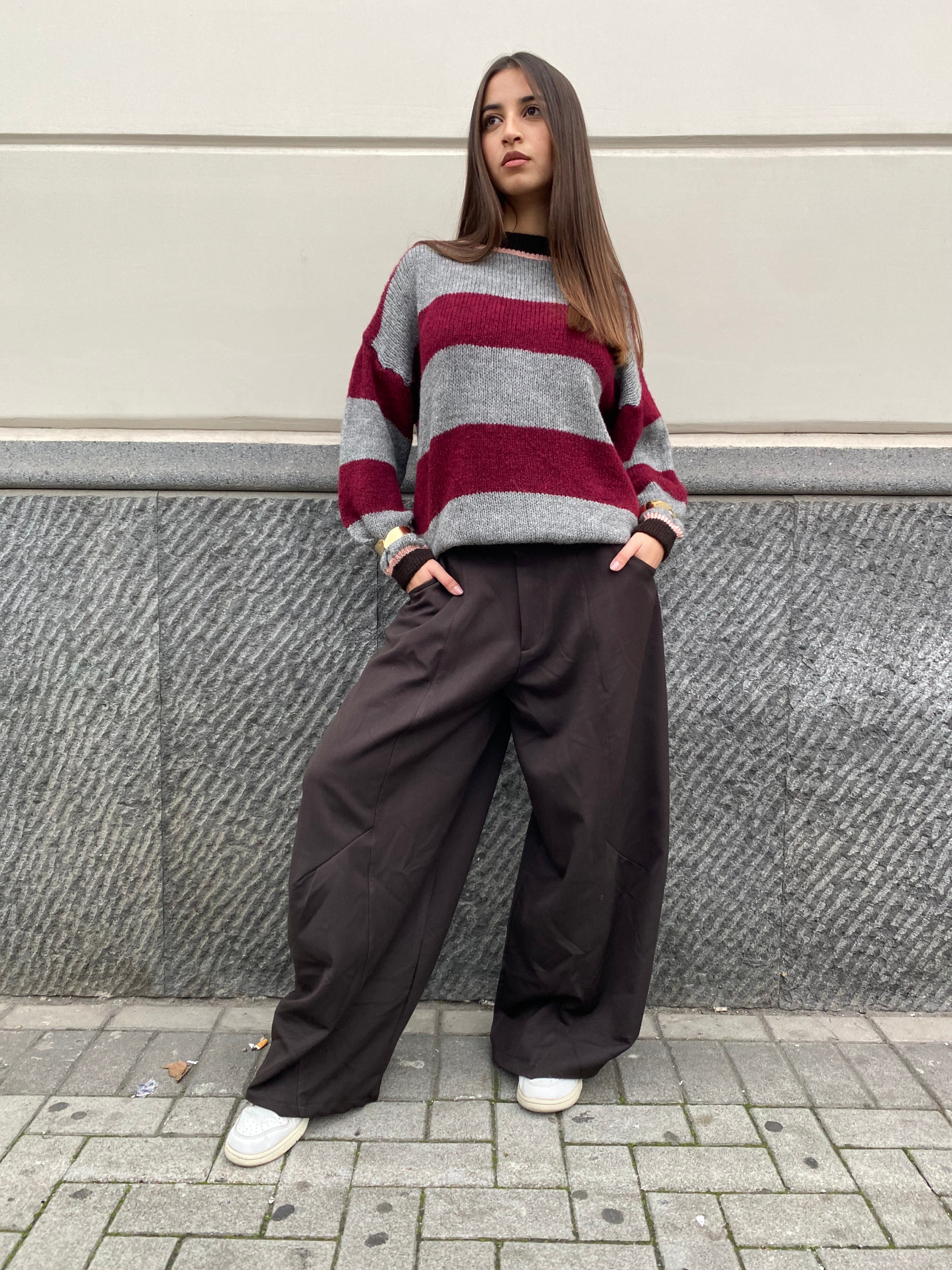Pantalone vestibilità balloon, largo di gamba, con elastico sul retro, leggermente stretto giù, taglia unica adattabile ad...