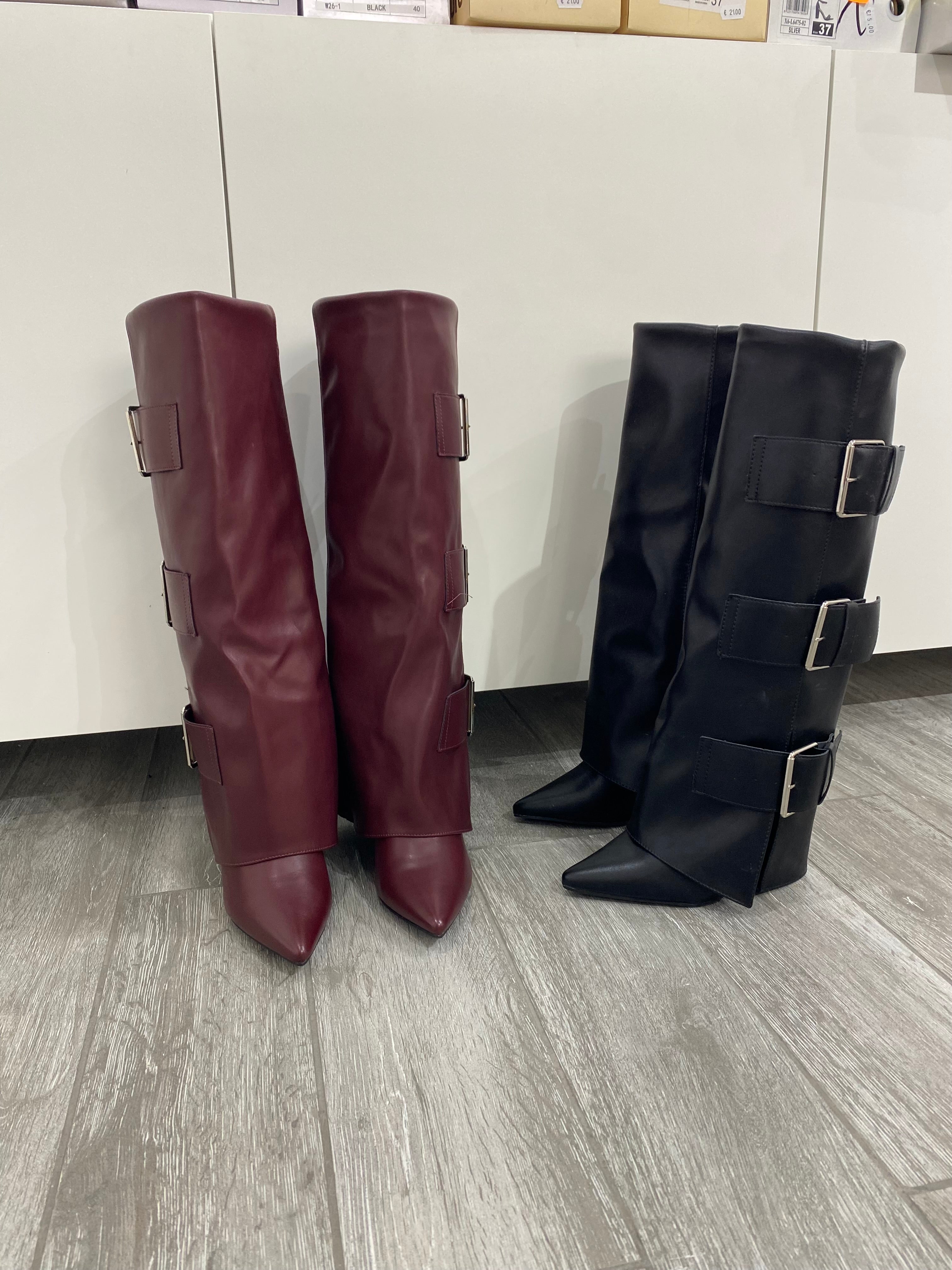 Stivali in ecopelle con gambale 50 cm, tacco doppio 10 cm.