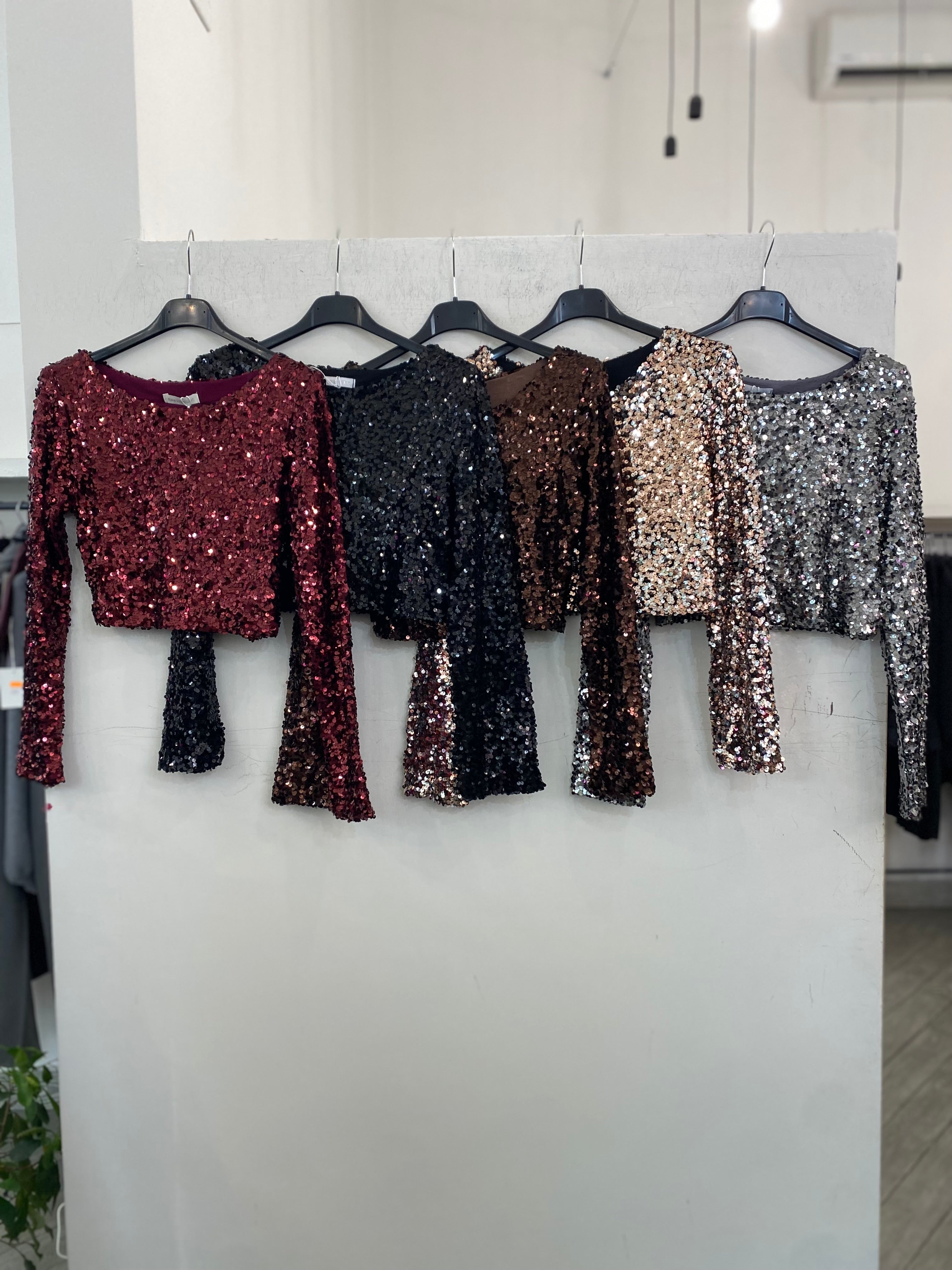 Top corto elasticizzato, in paillettes, foderato quindi non punge e non da fastidio, taglia unica adattabile ad...